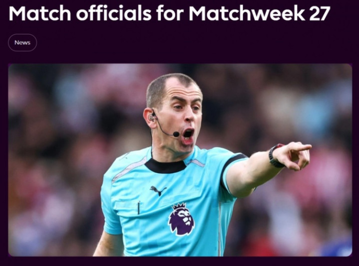 直播吧2月17日讯英超官方公布联赛第27轮各场执法裁判,彼得·班克斯(上图)执法热刺vs阿森纳,安东尼·泰勒执法诺丁汉森林vs利物浦。